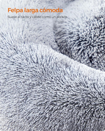 Felpa de pelo largo: Toca una de estas camas y verás a qué me refiero. La felpa debe ser densa, suave y de al menos 3-4 cm de largo. Si ves que suelta pelo o se aplasta fácilmente al tocarla, huye. Una buena cama mantiene su esponjosidad aunque la uses todos los días.